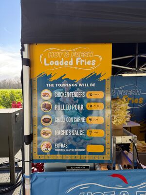 Details of products sold: - Festival Loaded Ltd specialises in Fully Loaded French Fries with various topping inc. Chicken Tenders, Pulled Pork, Chili Con Carne, and Nachos Sauce.